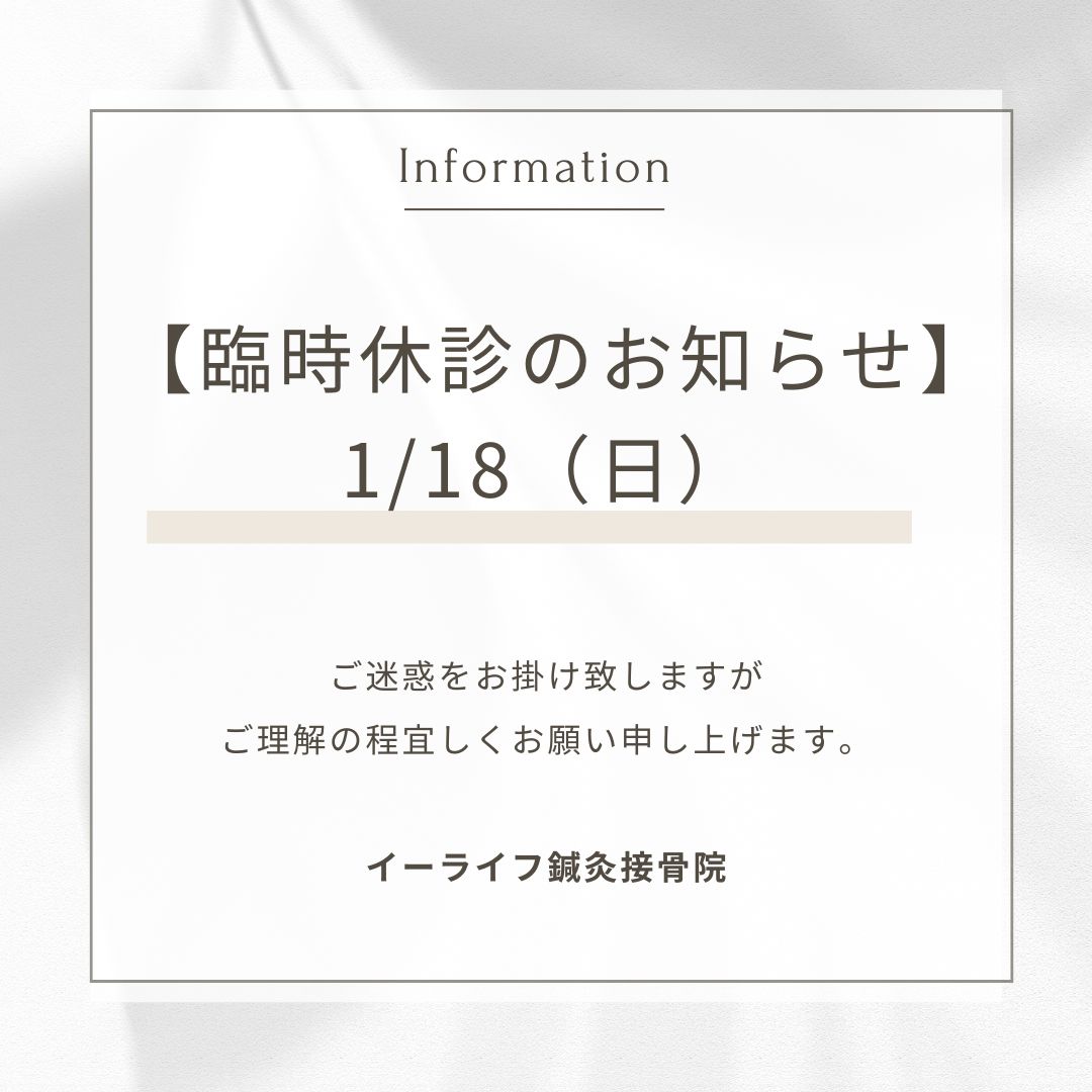 1月18日(日)院内の都合により臨時休診となります。